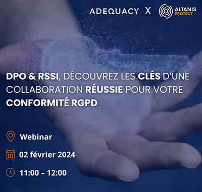 Adequacy x Altanis Protect : un webinaire pour aider les DPO et RSSI à mieux collaborer et garantir la conformité RGPD. Découvrez les rôles, responsabilités, outils et bonnes pratiques pour une conformité durable, avec un focus sur NIS2 et l'IA.